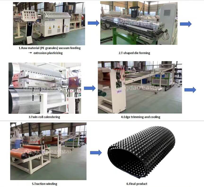 این خط تولید به طور خاص برای تولید تخته های زهکشی پلی اتیلن طراحی شده است و به طور گسترده در موارد زیر استفاده می شود: