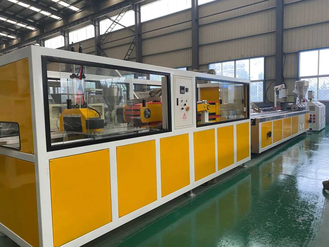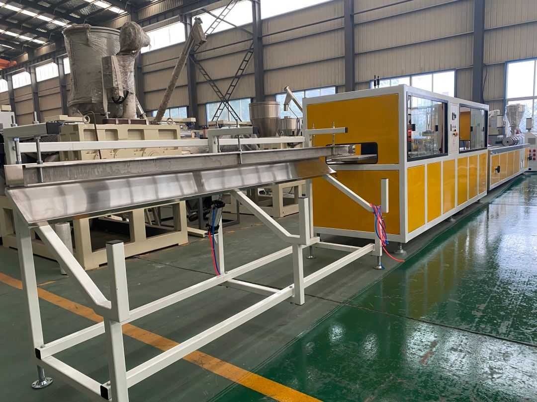 خط تولید اکستروژن کف پلاستیک چوب PVC - خط تولید اکستروژن کف پلاستیک چوب از اکسترودر دو پیچ مخروطی SJZ65/132 استفاده می کند که به طور ویژه برای اکستروژن، پلاستیک سازی و قالب گیری پودر پلی اتیلن + پودر چوب استفاده می شود. دارای ویژگی های خروجی بالا، اثر پلاستیک سازی خوب و مصرف انرژی کم است.