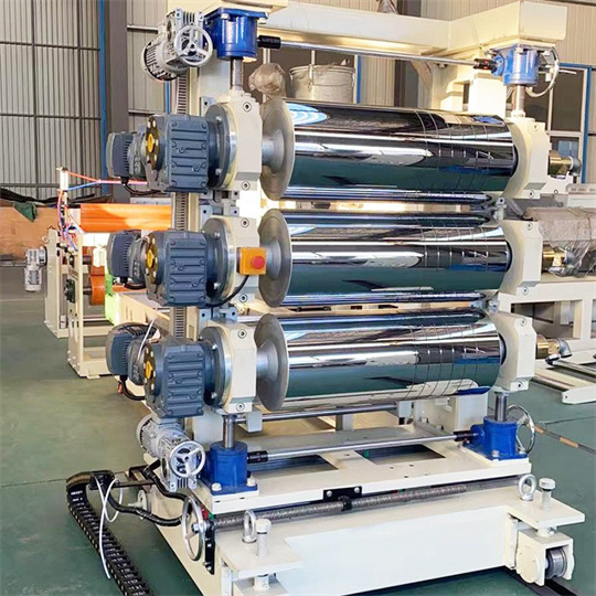 این دستگاه کلندری سه غلتکی برای تجهیزات پرده درب نرم پی وی سی می تواند پرده های درب نرم رنگی براق، مات و راه راه را در یک دستگاه تولید کند. کار با آن آسان است.